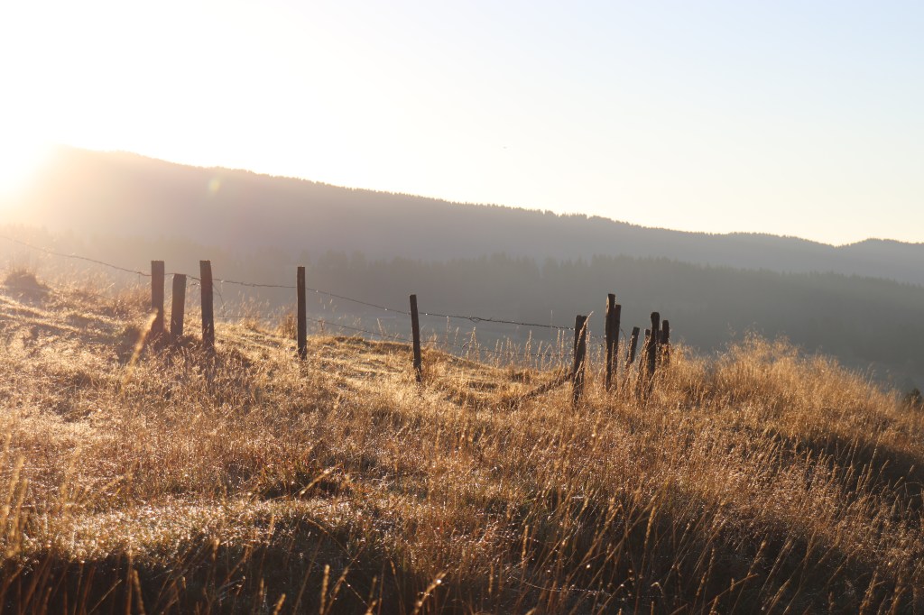 Sveglia all’alba; oggi mi faccio una corsetta in posti poco frequentati, mi son detta. Mi alzo, mi lavo e mi vesto, carico il cane e prendo su la vecchia golf e mentre il sole comincia a rischiarare un po’ l’aria, arrivo dove i prati degli altipiani si allargano all’infinito.