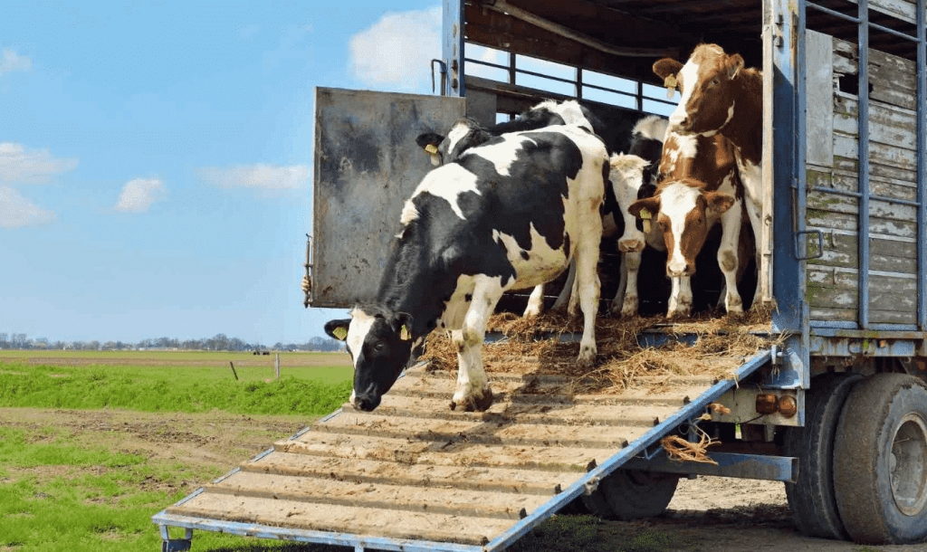 Frisone e Pezzate rosse che scendono spontaneamente da un camion per il trasporto di animali vivi; questi animali, a differenza di quelli che avevamo noi che facevano solo tre viaggi in tutta la loro vita, sono evidentemente abituati a viaggiare. Foto dal web.