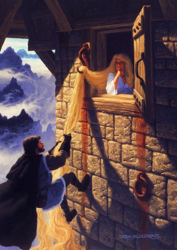 Gli incantesimi nelle fiabe sono quindi pura magia e in termini simbolici parlano sempre di un addormentamento dello stato di coscienza. Pure Raperonzolo si può dire che è completamente addormentata, seppure apparentemente sveglia; mentre se ne sta rinchiusa nella sua torre senza porte, che somiglia molto a una bara, nella prima parte della fiaba non fa mai nulla per tentare la fuga. Si passa il tempo nell’unica occupazione di intrecciarsi e pettinarsi i lunghissimi capelli; sembra un influencer che pubblicizza uno shampoo o le mollette cinesi per i capelli.